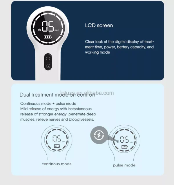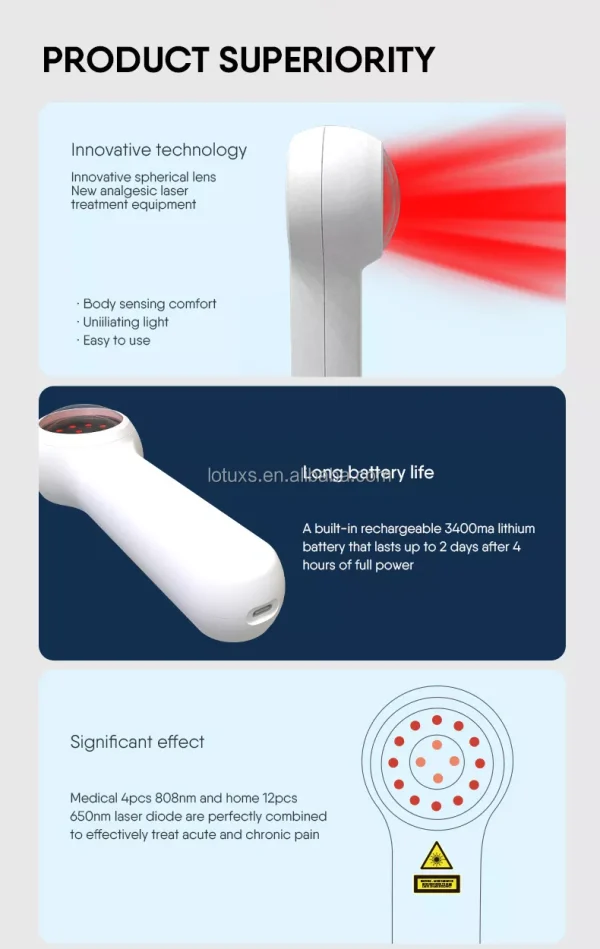 Low-Level Laser Therapy(LLLT) or Cold Laser Therapy is the application of low-power light energy, within the visible red and near-infrared band of the electromagnetic spectrum, utilizes specific wavelengths of light to interact with tissue and to help eliminate pain, swelling, reduce spasms, and increase funtionality.