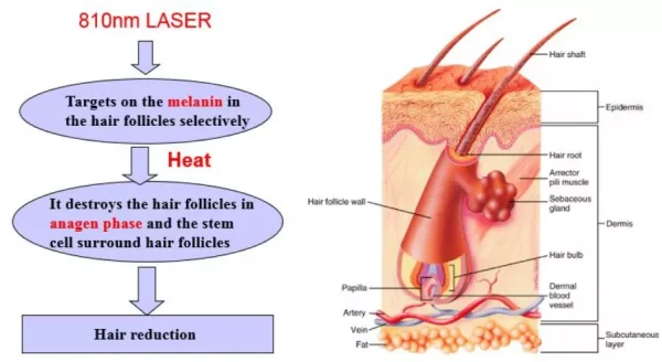 808nm diode laser hair removal treatment will be carried out after the destruction of the hair follicle block by the laser freely,